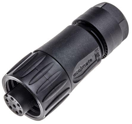 This is Eco-Mate Series 6 + PE Pole Cable Mount Connector Socket IP65 IP67 manufactured by Amphenol. The manufacturer part number is C016-10D006-010-12. The product has a current rating of 13.0a. The product is available in cable mount configuration. It is IP rated with ip65, ip67. The product eco-mate, is a highly preferred choice for users. It has straight body orientation. Moreover, the product has a nominal 250.0 v voltage rating. While the pole has 6 + pe format. This female contact is widely suited for specific applications. The product also features robust polymer housing material. It comprises a socket. The connector has standard size. The high-quality gold, silver is used as contact plating material. It allows crimp termination method. The product contains 6 + pe contacts.