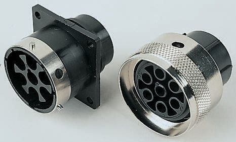This is 7 Pole Panel Mount Connector Socket Male Contacts manufactured by ITT Cannon. The manufacturer part number is 192990-1360. It is a type of bayonet mating. The product is available in panel mount configuration. The product trident ringlock, is a highly preferred choice for users. It has straight body orientation. This male contact is widely suited for specific applications. The product also features robust polymer housing material. It comprises a socket. It allows crimp termination method. The product contains 7 contacts.