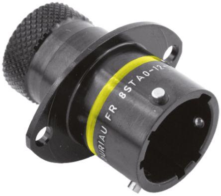 This is 8STA Series 43 Pole Panel Mount Connector Socket with Male Contacts IP67 manufactured by Souriau. The manufacturer part number is 8STA01243PA. It is a type of bayonet mating. The product is available in panel mount configuration. It is IP rated with ip67. The product 8sta, is a highly preferred choice for users. It has straight body orientation. It allows crimp, pc tail termination method. This male contact is widely suited for specific applications. The product also features robust aluminium housing material. It comprises a socket. The connector has standard size. The high-quality gold is used as contact plating material. The shell has 12 size. The product contains 43 contacts. The product is made from sturdy copper materials.