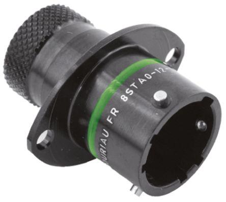 This is 8STA Series 10 Pole Panel Mount Connector Socket with Male Contacts IP67 manufactured by Souriau. The manufacturer part number is 8STA01298PD. The product has a current rating of 7.5a. It is a type of bayonet mating. The product is available in panel mount configuration. It is IP rated with ip67. The product 8sta, is a highly preferred choice for users. It has straight body orientation. It allows crimp, pc tail, solder cup termination method. This male contact is widely suited for specific applications. The product also features robust aluminium housing material. It comprises a socket. The connector has standard size. The high-quality gold is used as contact plating material. The shell has 12 size. The product contains 10 contacts. The product is made from sturdy copper materials.