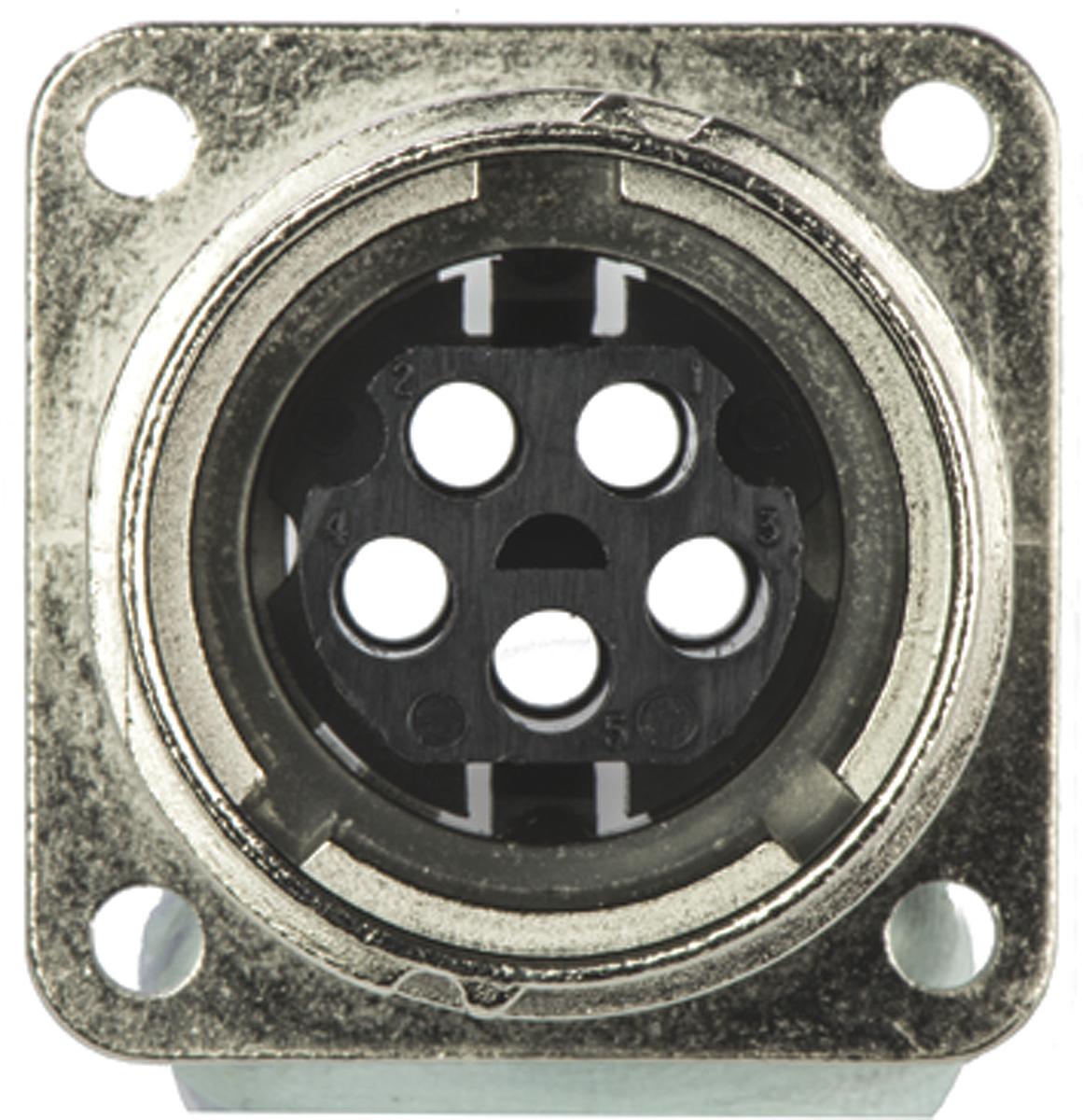 This is 5 Pole Panel Mount Connector with Female Contacts manufactured by TE Connectivity. The manufacturer part number is 208721-1. The product is available in panel mount configuration. It has straight body orientation. It allows crimp termination method. This female contact is widely suited for specific applications. It comprises a socket. Whereas, the minimum operating temperature of the product is -55°c. The shell has 14 size. The product contains 5 contacts. It has a maximum operating temperature of +125°c.