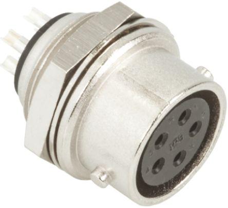 This is RM Series 5 Pole Panel Mount Miniature Connector Socket with Female Contacts manufactured by Hirose. The manufacturer part number is RM12BRD-5S(71). The product has a current rating of 5.0a. It is a type of bayonet mating. The product is available in panel mount configuration. Moreover, the product has a nominal 350.0 v voltage rating. The product rm, is a highly preferred choice for users. It has straight body orientation. It allows solder termination method. This female contact is widely suited for specific applications. The product also features robust brass, zinc housing material. It comprises a socket. The connector has miniature size. The high-quality silver is used as contact plating material. The shell has 12 size. The product contains 5 contacts. The product is made from sturdy copper materials.