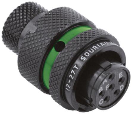 This is 8STA Series 6 Pole Cable Mount Connector Plug Female Contacts IP67 manufactured by Souriau. The manufacturer part number is 8STA61098SD. Priced to Clear Options - yes. The product has a current rating of 7.5a. It is a type of bayonet mating. The product is available in cable mount configuration. It is IP rated with ip67. The product 8sta, is a highly preferred choice for users. It has straight body orientation. It allows crimp, pc tail, solder cup termination method. This female contact is widely suited for specific applications. The product also features robust aluminium housing material. It comprises a plug. The connector has standard size. The high-quality gold is used as contact plating material. The shell has 10 size. The product contains 6 contacts. The product is made from sturdy copper materials.