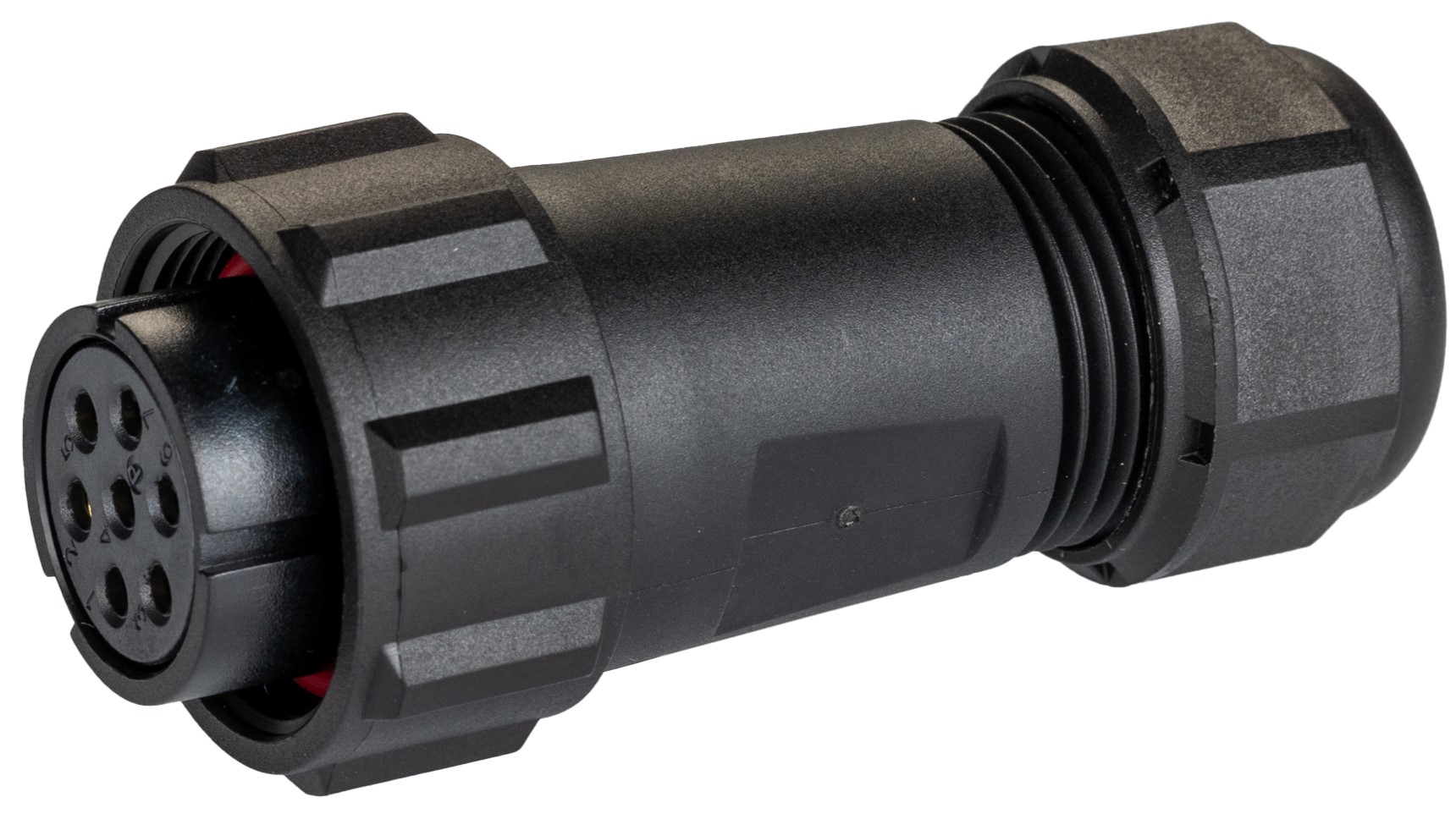 This is 7 Pole Cable Mount Circular Connector Plug with Female Contacts IP68 manufactured by RS Pro. The manufacturer part number is 144-4211. The product contains 7 contacts. The product has a current rating of 15a. It is a type of threaded mating. The product is available in cable mount configuration. It is IP rated with ip68. Whereas, the minimum operating temperature of the product is -40°c. The product sp21, is a highly preferred choice for users. It has straight body orientation. Moreover, the product has a nominal 500v voltage rating. While the pole has 7p format. This female contact is widely suited for specific applications. It allows solder termination method. The product also features robust nylon 66, pc housing material. It comprises a plug. The high-quality gold is used as contact plating material. It has a strain relief characteristic no . Its outer diameter is 7→12mm. It has a maximum operating temperature of 85°c. The connector has standard size. The product is made from sturdy brass materials.