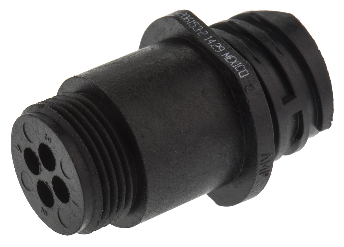 This is 4 Pole Cable Mount Connector Socket Male Contacts manufactured by TE Connectivity. The manufacturer part number is 206153-2. The product is available in cable mount configuration. The product cpc series 1, is a highly preferred choice for users. It has straight body orientation. It allows crimp termination method. This male contact is widely suited for specific applications. It comprises a socket. The shell has 11 size. The product contains 4 contacts. The connector has standard size.