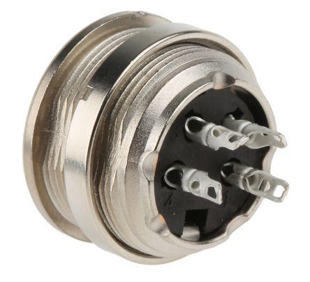 This is C 091 A Series 4 Pole Panel Mount Connector Socket Female Contacts IP40 manufactured by Amphenol. The manufacturer part number is T3303 000. The product has a current rating of 5a. It is a type of screw on mating. The product is available in panel mount configuration. It is IP rated with ip40. The product c 091 a, is a highly preferred choice for users. It has straight body orientation. Moreover, the product has a nominal 300 v voltage rating. This female contact is widely suited for specific applications. It allows solder termination method. The product also features robust metal, polymer housing material. It comprises a socket. The shell has 20mm size. The product contains 4 contacts.
