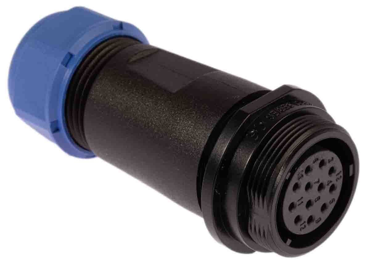 This is 12 Pole Cable Mount Circular Connector Plug Female Contacts IP68 manufactured by RS Pro. The manufacturer part number is 144-4195. The product has a current rating of 5a. While the pole has 12p format. The product also features robust nylon 66, pc housing material. Its outer diameter is 7→12mm. Moreover, the product has a nominal 400v voltage rating. It comprises a socket. The high-quality gold is used as contact plating material. It allows solder termination method. It has a strain relief characteristic no . It has a maximum operating temperature of 85°c. It is IP rated with ip68. It has straight body orientation. This female contact is widely suited for specific applications. The connector has standard size. It is a type of threaded mating. The product is available in cable mount configuration. The product sp21, is a highly preferred choice for users. Whereas, the minimum operating temperature of the product is -40°c. The product contains 12 contacts. The product is made from sturdy brass materials.