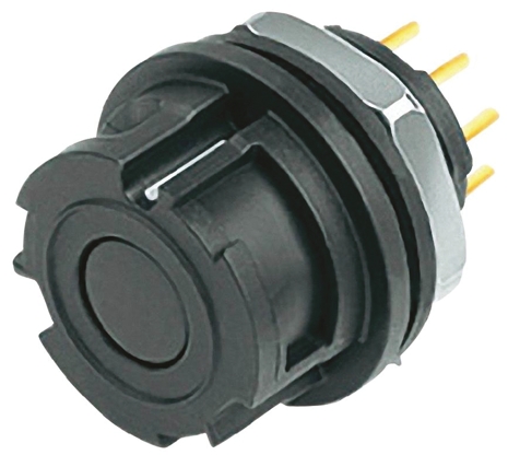 This panel mount connector combines a small footprint with a robust design, making it ideal for tight spaces in control panels, electronic enclosures, and automated machinery. The miniature construction reduces cable clutter while maintaining easy access for installation and maintenance.