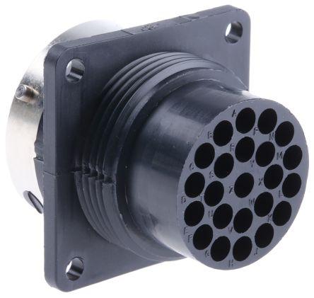 This is Trident Ringlock Series Male Panel Mount Connector 23 contacts Socket manufactured by ITT Cannon. The manufacturer part number is 192990-1350/TR1823RMS1NB. It is a type of bayonet mating. The product is available in panel mount configuration. Moreover, the product has a nominal 250.0 v voltage rating. The product trident ringlock, is a highly preferred choice for users. It has straight body orientation. This male contact is widely suited for specific applications. The product also features robust polymer housing material. It comprises a socket. It allows crimp termination method. The product contains 23 contacts.