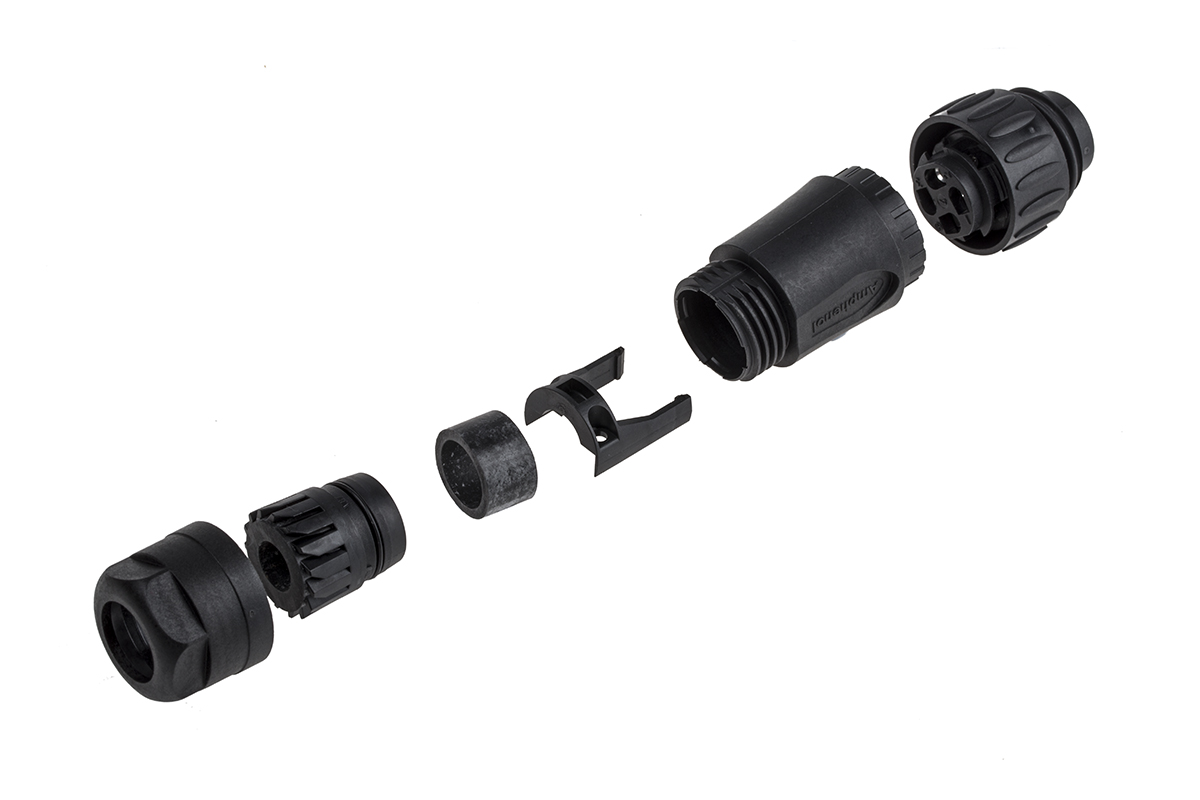 The Amphenol plug works by connecting power or signal cables using a screw-type termination. Once wired, the connector is inserted into a matching socket and twisted to lock, providing a secure and sealed connection that prevents ingress of dust or water, crucial for outdoor or industrial setups.
