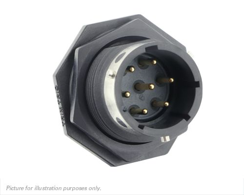 This is Jam Nut Connector Nut 7 Contacts manufactured by Souriau. The manufacturer part number is UTGX714E7P. The product is available in panel mount configuration. It is IP rated with ip68, ip69k. The product utgx, is a highly preferred choice for users. It allows solder termination method. The product contains 7 contacts. The connector has standard size.