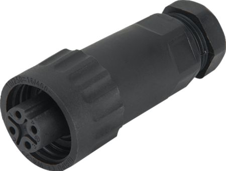 This is Cable Mount Circular Connector 4 Contacts manufactured by RS PRO. The manufacturer part number is 210-7317. The product has a current rating of 16a. It is a type of threaded coupling mating. The product is available in cable mount configuration. It is IP rated with ip67. It has straight body orientation. Moreover, the product has a nominal 400 v voltage rating. While the pole has 4p format. This female contact is widely suited for specific applications. The product also features robust plastic housing material. The high-quality gold plated is used as contact plating material. It allows threaded termination method. The product contains 4 contacts.