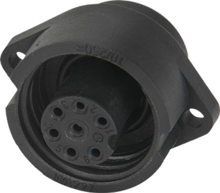 This is Panel Mount Circular Connector 7 Contacts manufactured by RS PRO. The manufacturer part number is 210-7324. The product has a current rating of 10a. It is a type of threaded coupling mating. The product is available in panel mount configuration. It is IP rated with ip67. It has straight body orientation. Moreover, the product has a nominal 250 v voltage rating. While the pole has 7p format. This female contact is widely suited for specific applications. The product also features robust plastic housing material. The high-quality gold plated is used as contact plating material. It allows threaded termination method. The product contains 7 contacts.
