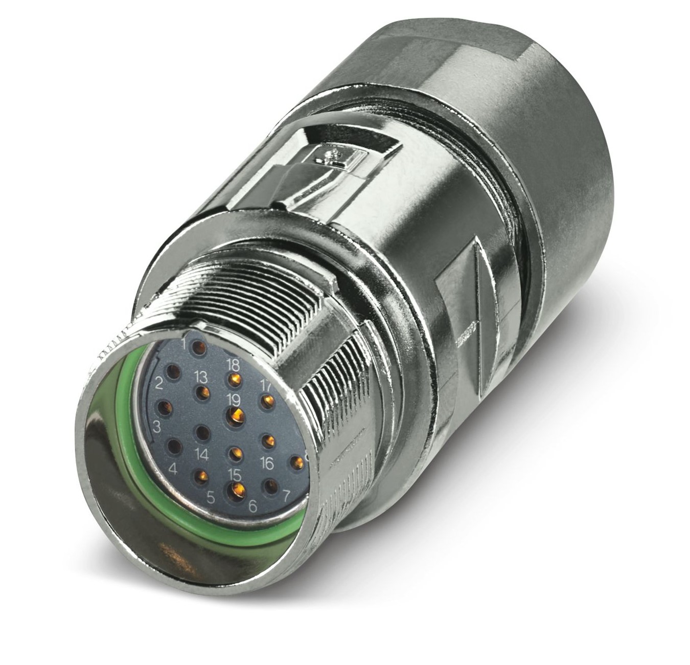 This is Cable Mount Industrial Circular Connectors 19 Contacts M23 Connector Socket manufactured by Phoenix Contact. The manufacturer part number is 1629102. The product is available in cable mount configuration. It comprises a socket. It allows crimp termination method. The product contains 19 contacts. The connector has m23 size. It is assigned with possible HTSUS value of 8538.90.8180. It is made from highly reliable gadolinium-zinc materials. Note: contacts not included. The product has -40°c ~ 105°c operating temperature range. It comes in for female sockets configuration. The product carries possible position value of 19 (16 + 2 power + pe). Furthermore, the product is shielded with shielded. It has an integral silver housing colour. It has a typical circular shape. The basic product material is metal. It is shipped in bulk package . The insert's size is m23-19. plug housing Connector type offer robust functionality. Furthermore, threaded is the Fastening Type of the product. It has a long 6 weeks standard lead time. While it is also supplied with highly stable polyamide (pa66), nylon 6/6 insert material. The product has a n (normal) orientation. It is IP rated with ip66/ip68 - dust tight, water resistant, waterproof. The splendid features of the product include backshell. The product is available in free hanging (in-line) configuration. The product pro, is a highly preferred choice for users. It has typical contact type of crimp. The product is designated with the ear99 code number.