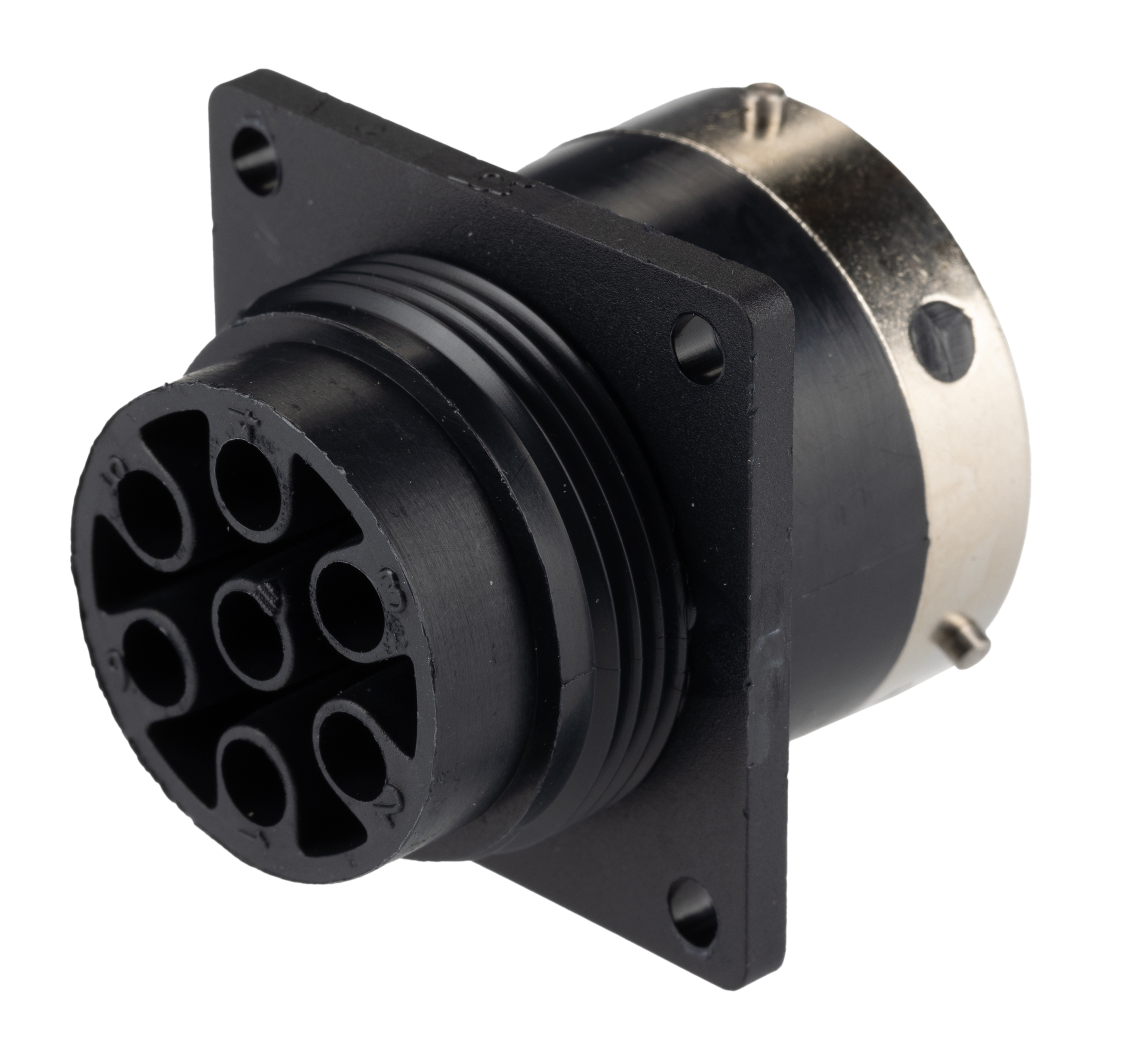 This is Connector 7 Contacts Panel Mount Socket Male Trident Ringlock Series manufactured by ITT Cannon. The manufacturer part number is TR1807RMS1NB / 192990-1360. It is a type of bayonet mating. The product is available in panel mount configuration. It is IP rated with ip65. The product trident ringlock, is a highly preferred choice for users. It has straight body orientation. This male contact is widely suited for specific applications. The product also features robust polymer housing material. It comprises a socket. The connector has standard size. It allows crimp termination method. The product contains 7 contacts.