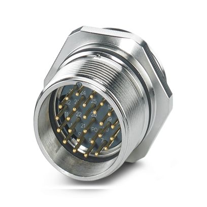 This is Circular Connector 26 Contacts Front Mount Plug Male IP67 HC Series manufactured by Phoenix Contact. The manufacturer part number is 1590282. The product also features robust copper zinc alloy, zinc housing material. The product contains 26 contacts. The product has a straight orientation. It is IP rated with ip67. The connector has m27 size. The product hc, is a highly preferred choice for users. The product is coded with n. This male contact is widely suited for specific applications. Features a 8a current in A. It comprises a plug. It carries a 48 v ac, 74 v dc of voltage. The high-quality nickel plated is used as contact plating material. The product is made from sturdy copper zinc alloy materials. The product is designed with a solder termination. circular connector is a versatile product designed to provide user-defined applications. It has a maximum operating temperature of 125°c. Whereas, the minimum operating temperature of the product is -20°c. It has a front type mount .