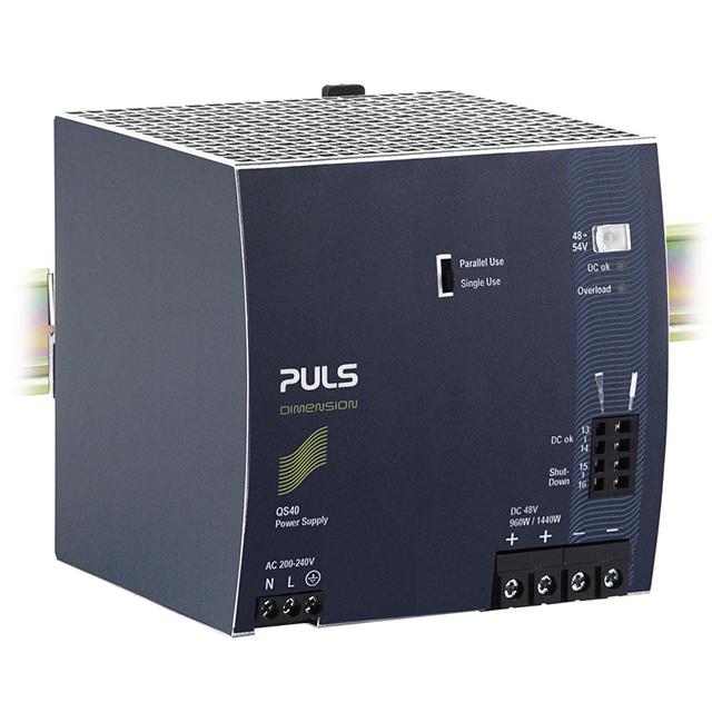 This is manufactured by PULS, LP. The manufacturer part number is QS40.484. Moreover, it corresponds to qs40, a base product number of the product. It is assigned with possible HTSUS value of 8504.40.6018. The product is rohs3 compliant. It has a 48v output voltage. The product features power and watts of 960w. The maximum product's output current is 20a. It is approved by abs, dnv gl, eac, iec, ul. It carries ac input type. The product is widely employed in ite (commercial). In addition, it is reach affected. It is a highly efficient product with an 95% of high efficiency. The puls, lp's product offers user-desired applications. The product's diameters include 5.00" l x 4.88" w x 4.88" h (127.0mm x 124.0mm x 124.0mm). It has a long 2 weeks standard lead time. 500 v of isolation voltage. The product has an AC input voltage range of 170 ~ 264 vac. Its typical moisture sensitivity level is not applicable. The splendid features of the product include adjustable output, load sharing, pfc. The product dimension q (960w), is a highly preferred choice for users. The product has -10°c ~ 70°c (with derating) operating temperature range. In addition, box is the available packaging type of the product. Standard number include: 508; 60950-1; 61010-2-201. Additionally, the product is supplied with 1 outputs. The product is designated with the ear99 code number.