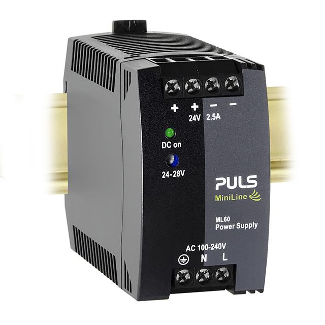 This is manufactured by PULS, LP. The manufacturer part number is ML60.241. Moreover, it corresponds to ml60, a base product number of the product. It is assigned with possible HTSUS value of 8504.40.9520. The product is rohs3 compliant. It has a 24v output voltage. The product features power and watts of 60w. The maximum product's output current is 2.5a. It is approved by abs, csa, dnv gl, eac, iec, nec, ul. It carries ac input type. The product is widely employed in ite (commercial). In addition, it is reach affected. It is a highly efficient product with an 89.7% of high efficiency. The puls, lp's product offers user-desired applications. The product's diameters include 3.58" l x 1.77" w x 2.95" h (91.0mm x 45.0mm x 75.0mm). It has a long 2 weeks standard lead time. 500 v of isolation voltage. The product has an AC input voltage range of 85 ~ 264 vac. Its typical moisture sensitivity level is not applicable. The splendid features of the product include adjustable output, load sharing, universal input. The product miniline (60w), is a highly preferred choice for users. The product has 0°c ~ 70°c (with derating) operating temperature range. In addition, box is the available packaging type of the product. Standard number include: class i div 2; class 2; 508; 60950-1; 61010-2-201. Additionally, the product is supplied with 1 outputs. The product is designated with the ear99 code number.