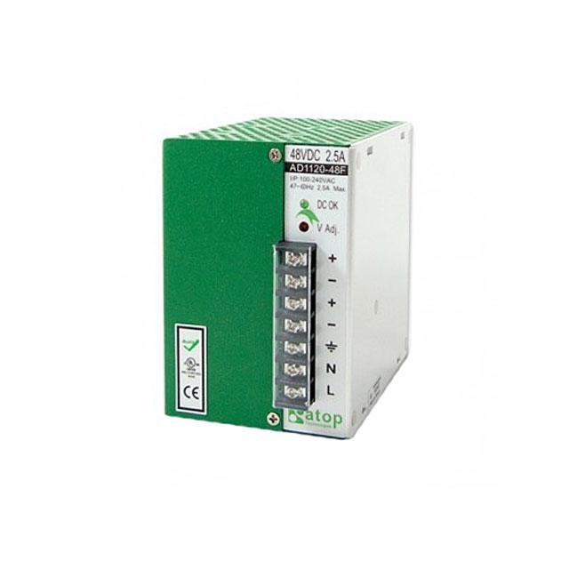 This is manufactured by ATOP Technologies. The manufacturer part number is AD1120-48F. It is assigned with possible HTSUS value of 8504.40.6018. The product is rohs3 compliant. It has a 48v output voltage. The product features power and watts of 120w. The maximum product's output current is 2.5a. It is approved by cb, ce, culus. It carries ac input type. The product is widely employed in ite (commercial). In addition, it is reach unaffected. It is a highly efficient product with an 82% of high efficiency. It is shipped in box package . The product's diameters include 4.76" l x 2.95" w x 4.33" h (121.0mm x 75.0mm x 110.0mm). It has a long 4 weeks standard lead time. The product has an AC input voltage range of 100 ~ 240 vac. Its typical moisture sensitivity level is not applicable. The splendid features of the product include adjustable output. The product has -20°c ~ 50°c operating temperature range. Moreover, it corresponds to ad1120, a base product number of the product. Additionally, the product is supplied with 1 outputs. The product is designated with the ear99 code number.
