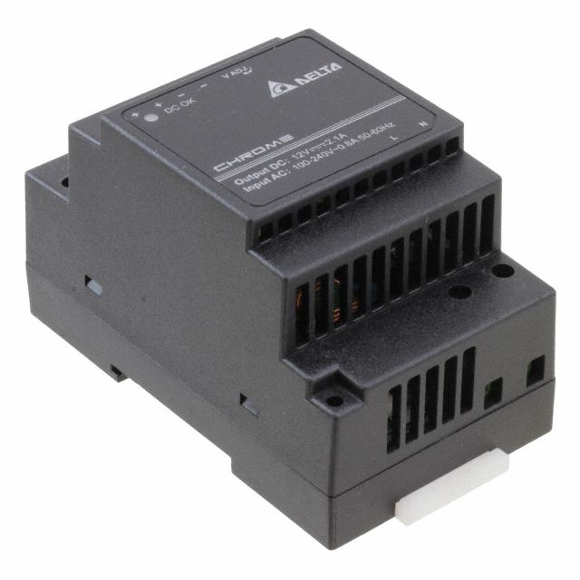 This is manufactured by Delta Electronics. The manufacturer part number is DRC-12V30W1AZ. It has a/an dc output voltage . It carries 2.1a output current. The product is available in din rail mount configuration. The product drc, is a highly preferred choice for users. It has ac, dc input voltage. In addition, the height is 91mm. Furthermore, the product is 53mm wide. The product comes in 55.6mm depth. Its input voltage is 90 → 264 v ac / 125 →375v dc. Features a 12v dc output voltage. Feature 30w of power rating. It comes in switched mode configuration. It is assigned with possible HTSUS value of 8504.40.6018. The product is rohs3 compliant. It has a 12v output voltage. The product features power and watts of 30w. The maximum product's output current is 2.1a. It is approved by cb, ce, culus, curus, tuv. It carries ac input type. The product is widely employed in ite (commercial). In addition, it is reach unaffected. It is a highly efficient product with an 87% of high efficiency. It is shipped in bulk package . The product's diameters include 3.58" l x 2.09" w x 2.19" h (91.0mm x 53.0mm x 55.6mm). It has a long 32 weeks standard lead time. 3 kv of isolation voltage. The product has an AC input voltage range of 90 ~ 264 vac. Its typical moisture sensitivity level is not applicable. The splendid features of the product include adjustable output, ip20, universal input. The product chrome (30w), is a highly preferred choice for users. The product has -25°c ~ 71°c (with derating) operating temperature range. Moreover, it corresponds to drc-12, a base product number of the product. Additionally, the product is supplied with 1 outputs. The product is designated with the ear99 code number.