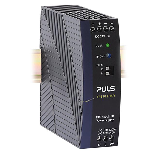 This is manufactured by PULS, LP. The manufacturer part number is PIC120.241D. Moreover, it corresponds to pic120, a base product number of the product. It is assigned with possible HTSUS value of 8504.40.9520. The product is rohs3 compliant. It has a 24v output voltage. The product features power and watts of 120w. The maximum product's output current is 5a. It is approved by eac, iec, ul. It carries ac input type. The product is widely employed in ite (commercial). In addition, it is reach affected. It is a highly efficient product with an 92.3% of high efficiency. The puls, lp's product offers user-desired applications. The product's diameters include 4.88" l x 1.54" w x 4.88" h (124.0mm x 39.0mm x 124.0mm). It has a long 2 weeks standard lead time. 500 v of isolation voltage. The product has an AC input voltage range of 90 ~ 132 vac, 180 ~ 264 vac. Its typical moisture sensitivity level is not applicable. The splendid features of the product include adjustable output, load sharing, universal input. The product piano (120w), is a highly preferred choice for users. The product has 0°c ~ 70°c (with derating) operating temperature range. In addition, box is the available packaging type of the product. Standard number include: 61010-2-201; 62368-1. Additionally, the product is supplied with 1 outputs. The product is designated with the ear99 code number.