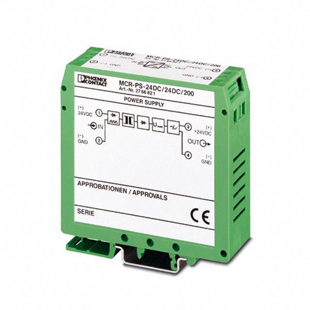 This is manufactured by Phoenix Contact. The manufacturer part number is 2766821. It is assigned with possible HTSUS value of 8504.40.9580. The product is rohs compliant. It has a 24v output voltage. The product features power and watts of 4.8w. The maximum product's output current is 200ma. It is approved by ce. It carries dc input type. In addition, it is reach unaffected. The phoenix contact's product offers user-desired applications. It has 30v of maximum DC input voltage. While the minimum DC input voltage is 20v. The product's diameters include 3.37" l x 0.98" w x 3.11" h (85.5mm x 25.0mm x 79.0mm). Its typical moisture sensitivity level is not applicable. The product has 0°c ~ 55°c operating temperature range. In addition, bulk is the available packaging type of the product. Additionally, the product is supplied with 1 outputs. The product is designated with the ear99 code number.