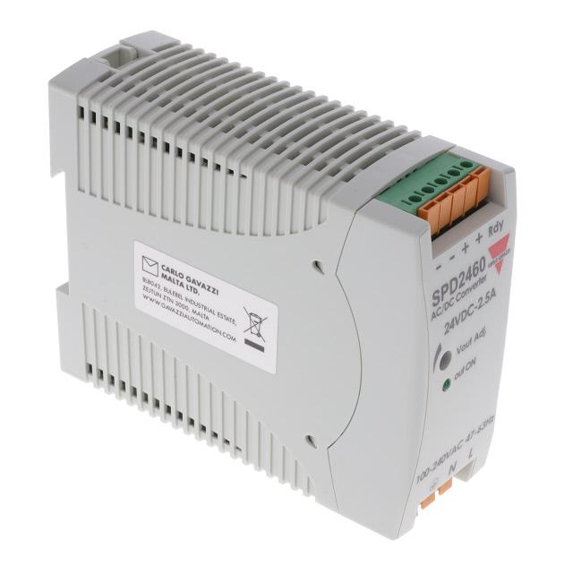 This is manufactured by Carlo Gavazzi Inc.. The manufacturer part number is SPD24601B. It is assigned with possible HTSUS value of 8504.40.9520. Additionally, the product is supplied with 1 outputs. It has a 24v output voltage. The product features power and watts of 60w. The maximum product's output current is 2.5a. It is approved by ccc, ce, culus, tuv. It carries ac or dc input type. The product is widely employed in hazardous locations, industrial, ite (commercial). In addition, it is reach unaffected. It is a highly efficient product with an 89% of high efficiency. It has 375v of maximum DC input voltage. It is shipped in box package . While the minimum DC input voltage is 90v. Does it require minimum load? no. The product's diameters include 4.49" l x 1.59" w x 3.54" h (114.0mm x 40.5mm x 90.0mm). 3 kv of isolation voltage. The product has an AC input voltage range of 85 ~ 264 vac. Its typical moisture sensitivity level is not applicable. The splendid features of the product include adjustable output, ip20, universal input. The product spd (60w), is a highly preferred choice for users. The product has -40°c ~ 71°c (with derating) operating temperature range. Moreover, it corresponds to spd24, a base product number of the product. The product is designated with the ear99 code number.