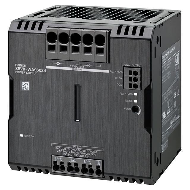 This is manufactured by Omron Automation and Safety. The manufacturer part number is S8VK-WA96024. It is assigned with possible HTSUS value of 8504.40.9540. The product is rohs3 compliant. It has a 24v output voltage. The product features power and watts of 960w. The maximum product's output current is 40a. It is approved by ce, curus, rcm, tuv, ul. It carries ac or dc input type. The product is widely employed in ite (commercial). In addition, it is reach affected. It is a highly efficient product with an 95% of high efficiency. The omron automation and safety's product offers user-desired applications. It has 350v of maximum DC input voltage. While the minimum DC input voltage is 240v. The product's diameters include 4.39" l x 4.65" w x 4.88" h (111.4mm x 118.0mm x 124.0mm). It has a long 9 weeks standard lead time. 3 kv of isolation voltage. The product has an AC input voltage range of 170 ~ 264 vac, 265 ~ 300 vac (3 phase). Its typical moisture sensitivity level is 1 (unlimited). The splendid features of the product include adjustable output, ip20. The product s8vk-wa (960w), is a highly preferred choice for users. The product has -40°c ~ 70°c (with derating) operating temperature range. In addition, bulk is the available packaging type of the product. Moreover, it corresponds to s8vk-wa960, a base product number of the product. Additionally, the product is supplied with 1 outputs. The product is designated with the ear99 code number.