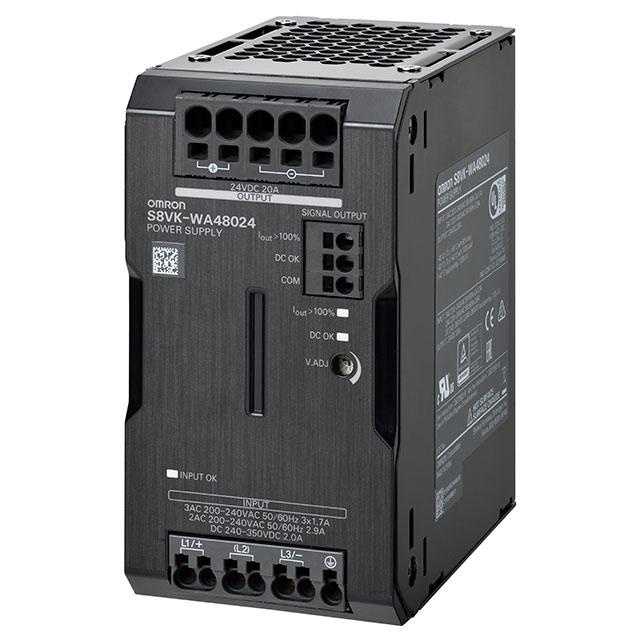 This is manufactured by Omron Automation and Safety. The manufacturer part number is S8VK-WA48024. It is assigned with possible HTSUS value of 8504.40.9530. The product is rohs3 compliant. It has a 24v output voltage. The product features power and watts of 480w. The maximum product's output current is 20a. It is approved by ce, curus, rcm, tuv, ul. It carries ac or dc input type. The product is widely employed in ite (commercial). In addition, it is reach unaffected. It is a highly efficient product with an 94% of high efficiency. The omron automation and safety's product offers user-desired applications. It has 350v of maximum DC input voltage. While the minimum DC input voltage is 240v. The product's diameters include 4.39" l x 2.56" w x 4.88" h (111.4mm x 65.0mm x 124.0mm). It has a long 13 weeks standard lead time. 3 kv of isolation voltage. The product has an AC input voltage range of 170 ~ 264 vac, 265 ~ 300 vac (3 phase). Its typical moisture sensitivity level is 1 (unlimited). The splendid features of the product include adjustable output, ip20. The product s8vk-wa (480w), is a highly preferred choice for users. The product has -40°c ~ 70°c (with derating) operating temperature range. In addition, bulk is the available packaging type of the product. Moreover, it corresponds to s8vk-wa480, a base product number of the product. Additionally, the product is supplied with 1 outputs. The product is designated with the ear99 code number.