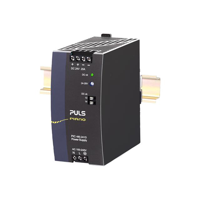 This is manufactured by PULS, LP. The manufacturer part number is PIC480.241D. Moreover, it corresponds to pic480, a base product number of the product. It is assigned with possible HTSUS value of 8504.40.9530. The product is rohs3 compliant. It has a 24v output voltage. The product features power and watts of 480w. The maximum product's output current is 20a. It is approved by eac, iec, ul. It carries ac input type. The product is widely employed in industrial, ite (commercial), laboratory. In addition, it is reach affected. It is a highly efficient product with an 94.2% of high efficiency. It is shipped in box package . The product's diameters include 5.00" l x 2.32" w x 4.88" h (127.0mm x 59.0mm x 124.0mm). It has a long 2 weeks standard lead time. 500 v of isolation voltage. The product has an AC input voltage range of 100 ~ 240 vac. Its typical moisture sensitivity level is 1 (unlimited). The splendid features of the product include adjustable output, ip20, load sharing, pfc, universal input. The product piano (480w), is a highly preferred choice for users. The product has -25°c ~ 70°c (with derating) operating temperature range. Standard number include: 61010-2-201; 62368-1. Additionally, the product is supplied with 1 outputs. The product is designated with the ear99 code number.