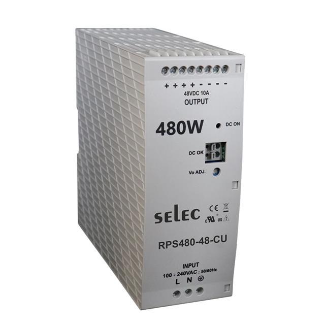 This is manufactured by Selec Controls USA Inc.. The manufacturer part number is RPS480-48-CU. It is assigned with possible HTSUS value of 8504.40.9530. The product is rohs3 compliant. The product features power and watts of 480w. The maximum product's output current is 10a. It is approved by ce, culus. It carries ac or dc input type. The product is widely employed in industrial, ite (commercial). It has a 48v output voltage. It is a highly efficient product with an 94% of high efficiency. It has 370v of maximum DC input voltage. It is shipped in box package . While the minimum DC input voltage is 127v. The product's diameters include 6.05" l x 2.36" w x 6.06" h (153.7mm x 60.0mm x 154.0mm). It has a long 24 weeks standard lead time. 4 kv of isolation voltage. The product has an AC input voltage range of 90 ~ 264 vac. Its typical moisture sensitivity level is not applicable. The splendid features of the product include adjustable output, pfc, universal input. The product rps480 (480w), is a highly preferred choice for users. The product has -25°c ~ 70°c (with derating) operating temperature range. Standard number include: 62368-1; ul 508. Additionally, the product is supplied with 1 outputs. The product is designated with the ear99 code number.