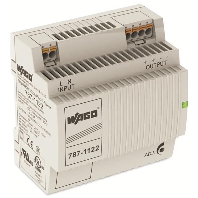 This is manufactured by WAGO Corporation. The manufacturer part number is 787-1122. It is assigned with possible HTSUS value of 8504.40.9520. Additionally, the product is supplied with 1 outputs. The product features power and watts of 96w. The maximum product's output current is 4a. It is approved by curus, eac, ul. It carries ac or dc input type. The product is widely employed in industrial, ite (commercial), laboratory. It has a 24v output voltage. It is a highly efficient product with an 88% of high efficiency. It has 300v of maximum DC input voltage. It is shipped in box package . While the minimum DC input voltage is 120v. The product's diameters include 2.17" l x 3.54" w x 3.50" h (55.0mm x 90.0mm x 89.0mm). 4.242 kv of isolation voltage. The product has an AC input voltage range of 85 ~ 264 vac. Its typical moisture sensitivity level is not applicable. The splendid features of the product include adjustable output, ip20, pfc, universal input. The product has -25°c ~ 70°c operating temperature range. Standard number include: 60950-1; 61010-1; ul 508. The product is designated with the ear99 code number.