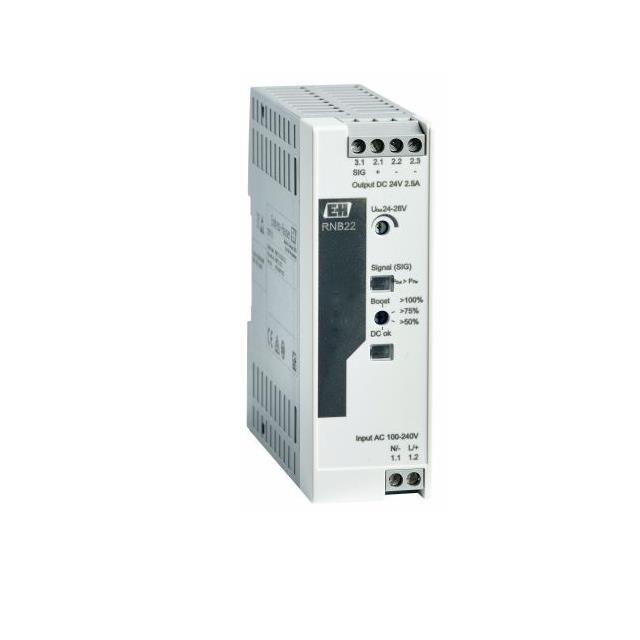 This is RN22 DIN Rail Power Supply ac dc Input 24 → 28V dc dc Output 20mA Output 1.6W manufactured by Endress+Hauser. The manufacturer part number is RNB22-AAA. It has a/an dc output voltage . It carries 20ma output current. The product is available in din rail mount configuration. The product rnb22, is a highly preferred choice for users. It has dc input voltage. In addition, the height is 107.5mm. Furthermore, the product is 17.5mm wide. The product comes in 116mm depth. Its input voltage is 24v dc. Features a 24 → 28v dc output voltage. Feature 1.6w of power rating. It comes in switched mode configuration. It is assigned with possible HTSUS value of 8504.40.9580. The product is rohs3 compliant. The product features power and watts of 60w. The maximum product's output current is 2.5a. It is approved by ce. It carries ac or dc input type. It has a 24v output voltage. It is a highly efficient product with an 92.6% of high efficiency. The product is widely employed in ite (commercial). The endress+hauser's product offers user-desired applications. It has 250v of maximum DC input voltage. While the minimum DC input voltage is 110v. The product's diameters include 3.74" l x 1.26" w x 3.90" h (95.0mm x 32.0mm x 99.1mm). It has a long 2 weeks standard lead time. 4 kv of isolation voltage. The product has an AC input voltage range of 100 ~ 240 vac. Its typical moisture sensitivity level is 1 (unlimited). The splendid features of the product include adjustable output. The product has -25°c ~ 70°c (with derating) operating temperature range. In addition, box is the available packaging type of the product. Standard number include: 60950-1. Additionally, the product is supplied with 1 outputs. The product is designated with the ear99 code number.