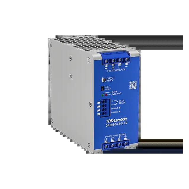 This is manufactured by TDK-Lambda. The manufacturer part number is DRB480-48-3-A0. Features a 48v output voltage. It has a/an dc output voltage . It carries 20a output current. The product drb, is a highly preferred choice for users. It has ac input voltage. Its input voltage is 400 → 500v. Its electrical phase configuration includes 3. It comes in din rail power supply configuration. It is assigned with possible HTSUS value of 8504.40.9530. The product is rohs3 compliant. It has a 48v output voltage. The product features power and watts of 480w. The maximum product's output current is 10a. It carries ac input type. In addition, it is reach affected. It is a highly efficient product with an 95.3% of high efficiency. The product is widely employed in ite (commercial), laboratory. The tdk-lambda's product offers user-desired applications. Does it require minimum load? no. The product's diameters include 5.86" l x 2.56" w x 5.08" h (148.8mm x 65.1mm x 129.0mm). It has a long 16 weeks standard lead time. The product has an AC input voltage range of 350 ~ 575 vac (3 phase). Its typical moisture sensitivity level is 1 (unlimited). The splendid features of the product include adjustable output, pfc, remote on/off, remote sense. The product drb480-3 (480w), is a highly preferred choice for users. The product has -25°c ~ 55°c operating temperature range. In addition, bulk is the available packaging type of the product. Standard number include: 60950-1; 61010-1; 62368-1. Additionally, the product is supplied with 1 outputs. The product is designated with the ear99 code number.
