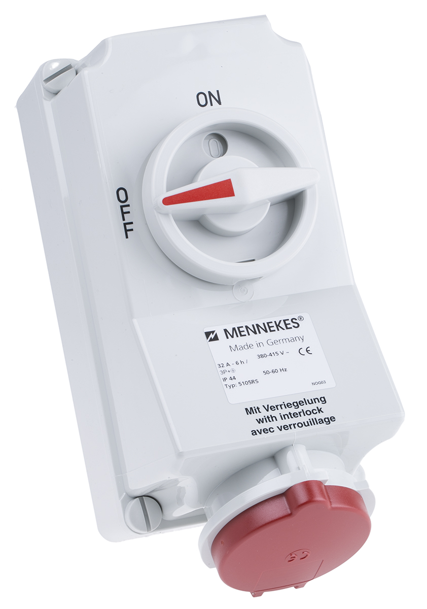 This is Switchable IP44 Interlocked Socket 3P+E Earthing Position 6h 32A 400 V manufactured by Mennekes. The manufacturer part number is 5105A. The product has a current rating of 32a. The given dimensions of the product include 264 x 118 x 146mm. It is IP rated with ip44. It has a decent red colour. Moreover, the product has a nominal 400 v voltage rating. While the pole has 3p+e format. Its accurate length is 264mm. Furthermore, the product is 118mm wide. The product comes in 146mm depth. It comprises a socket. Moreover, it is switchable yes . Additionally, it has 6h earthing position . The product's body is nicely designed from thermoplastic materials. It has straight body orientation.