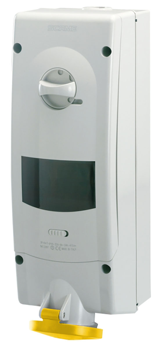 This is Switchable IP44 Industrial Interlock Socket 2P+E Earthing Position 4h 32A 110 V manufactured by Scame. The manufacturer part number is 567.3270-R. The product has a current rating of 32a. The given dimensions of the product include 136 x 199 x 513mm. It is IP rated with ip44. It has a decent yellow colour. Moreover, the product has a nominal 110 v voltage rating. While the pole has 2p+e format. Its accurate length is 136mm. Furthermore, the product is 199mm wide. The product comes in 513mm depth. It comprises a socket. Moreover, it is switchable yes . Additionally, it has 4h earthing position . The product's body is nicely designed from plastic materials. It has straight body orientation.