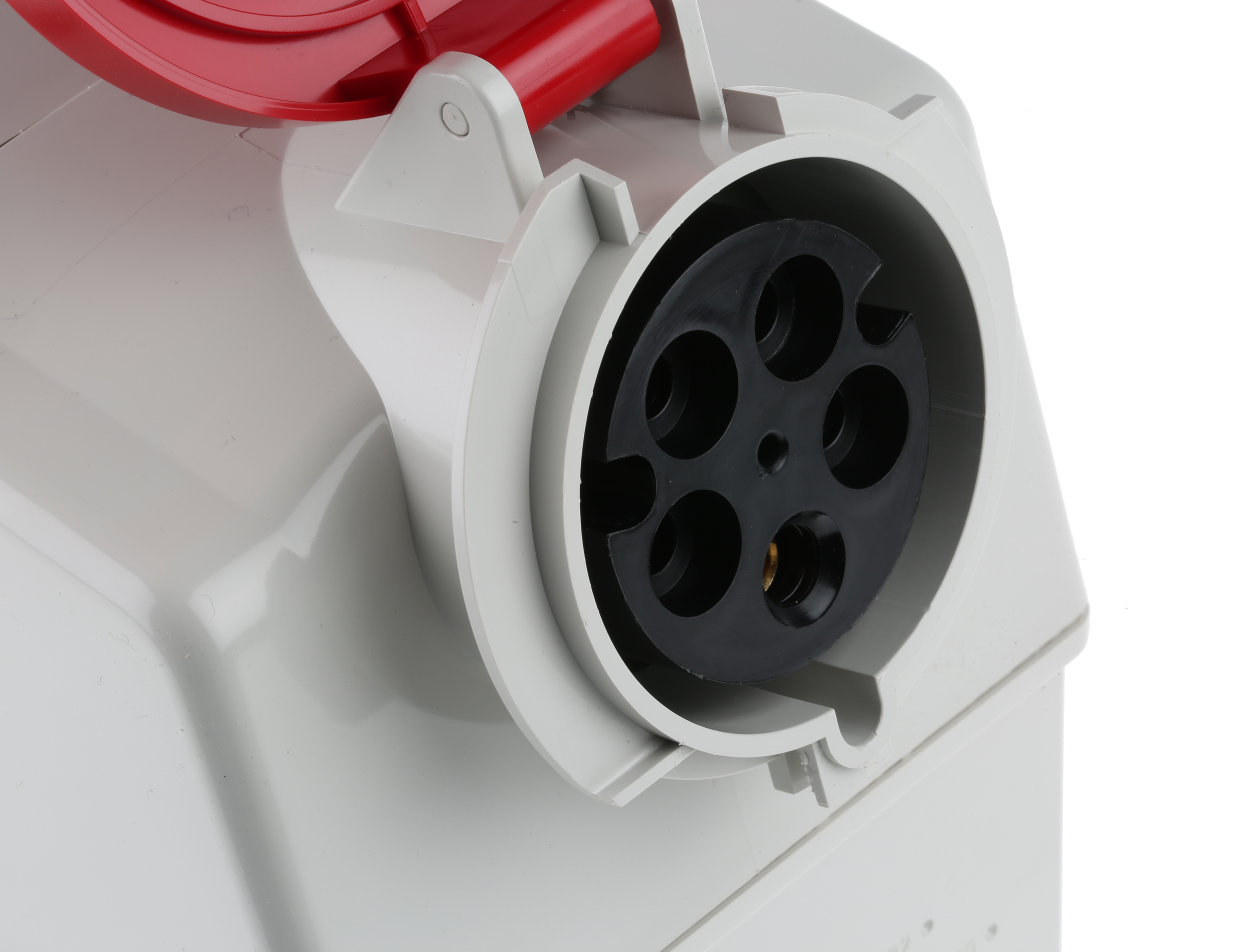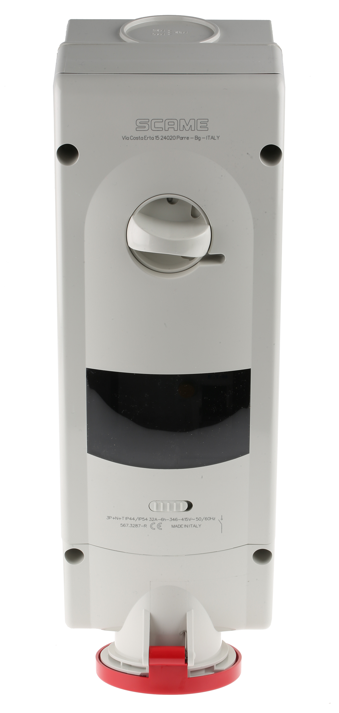 This is Switchable IP44 Industrial Interlock Socket 3P+N+E Earthing Position 6h 32A 400 V manufactured by Scame. The manufacturer part number is 567.3287-R. The product has a current rating of 32a. The given dimensions of the product include 136 x 199 x 519mm. It is IP rated with ip44. It has a decent red colour. Moreover, the product has a nominal 400 v voltage rating. While the pole has 3p+n+e format. Its accurate length is 136mm. Furthermore, the product is 199mm wide. The product comes in 519mm depth. It comprises a socket. Moreover, it is switchable yes . Additionally, it has 6h earthing position . The product's body is nicely designed from plastic materials. It has straight body orientation.
