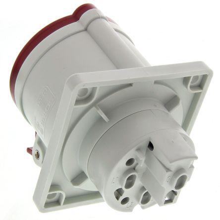 This is IP44 Red Flush Mount 3P+E Industrial Power Socket Rated At 32A 380 → 415 V manufactured by RS Pro. The manufacturer part number is 760-9033. The product has a current rating of 32.0a. The product is available in panel mount configuration. It is IP rated with ip44. It has a decent red colour. Moreover, the product has a nominal 415.0 v voltage rating. While the pole has 3p+e format. It comprises a socket. It allows screw termination method. It has straight body orientation.