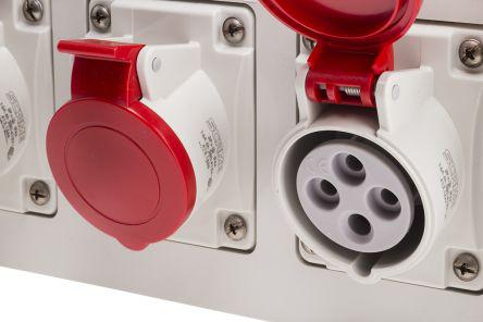 This is Block 3 Series IP44 Red 3P+E RCD Industrial Power Connector Socket Rated At 16A 400 V 632.1636-R manufactured by RS Pro. The manufacturer part number is 410-117. The product has a current rating of 16.0a. The product is available in wall mount configuration. It is IP rated with ip44. In addition, female is the available "Gender" of the product. It has a decent red colour. Moreover, the product has a nominal 415.0 v voltage rating. While the pole has 3p+e format. It allows pre-wired termination method. It comprises a socket. The product block 3, is a highly preferred choice for users.
