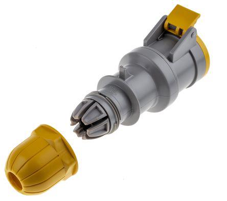 This is IP44 Yellow Cable Mount 2P+E Industrial Power Socket Rated At 16A 110 V ac manufactured by RS Pro. The manufacturer part number is 724-9104. The product has a current rating of 16.0a. The product is available in cable mount configuration. It is IP rated with ip44. In addition, female is the available "Gender" of the product. It has a decent yellow colour. Moreover, the product has a nominal 110.0 v voltage rating. While the pole has 2p+e format. It comprises a socket. It allows screw termination method. The cross section area of the cable includes 2.5mm². It has straight body orientation.