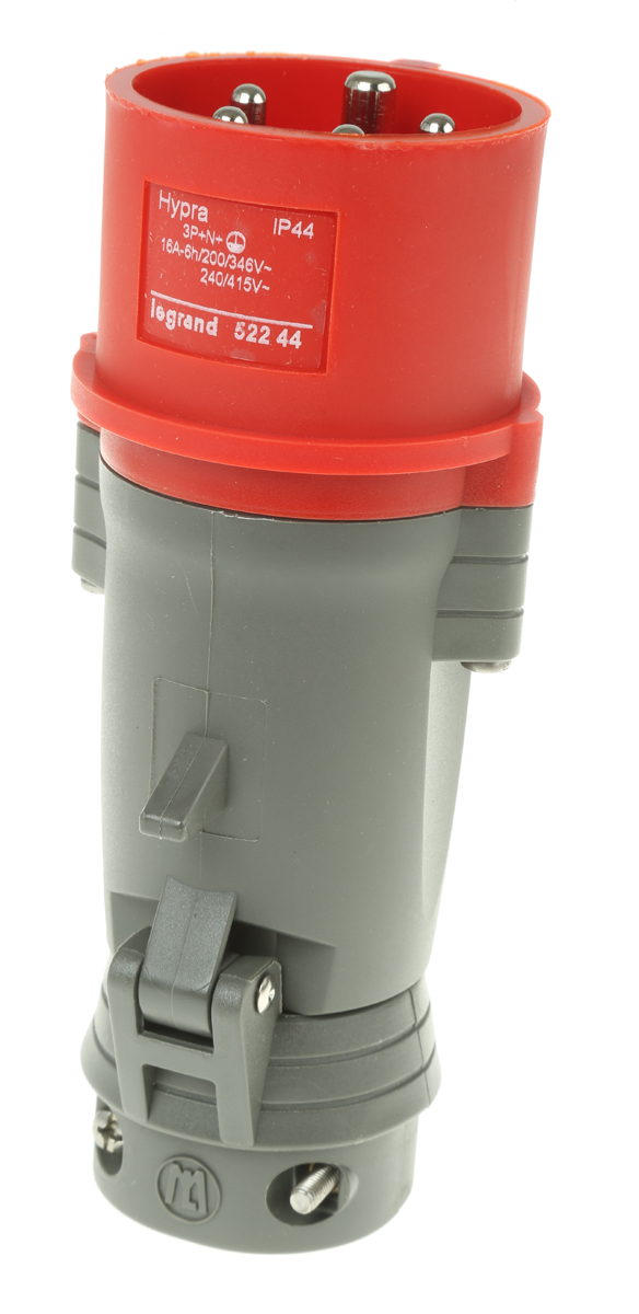 This is HYPRA Series IP44 Red 3P+N+E Industrial Power Plug Rated At 16A 380 → 415 V manufactured by Legrand. The manufacturer part number is 52244. The product has a current rating of 16a. The product is available in cable mount configuration. It is IP rated with ip44. In addition, male is the available "Gender" of the product. It has a decent red colour. Moreover, the product has a nominal 415 v voltage rating. While the pole has 3p + n + e format. It comprises a plug. Whereas, the minimum operating temperature of the product is -50°c. The product hypra, is a highly preferred choice for users. It has a maximum operating temperature of +100°c. It has straight body orientation.