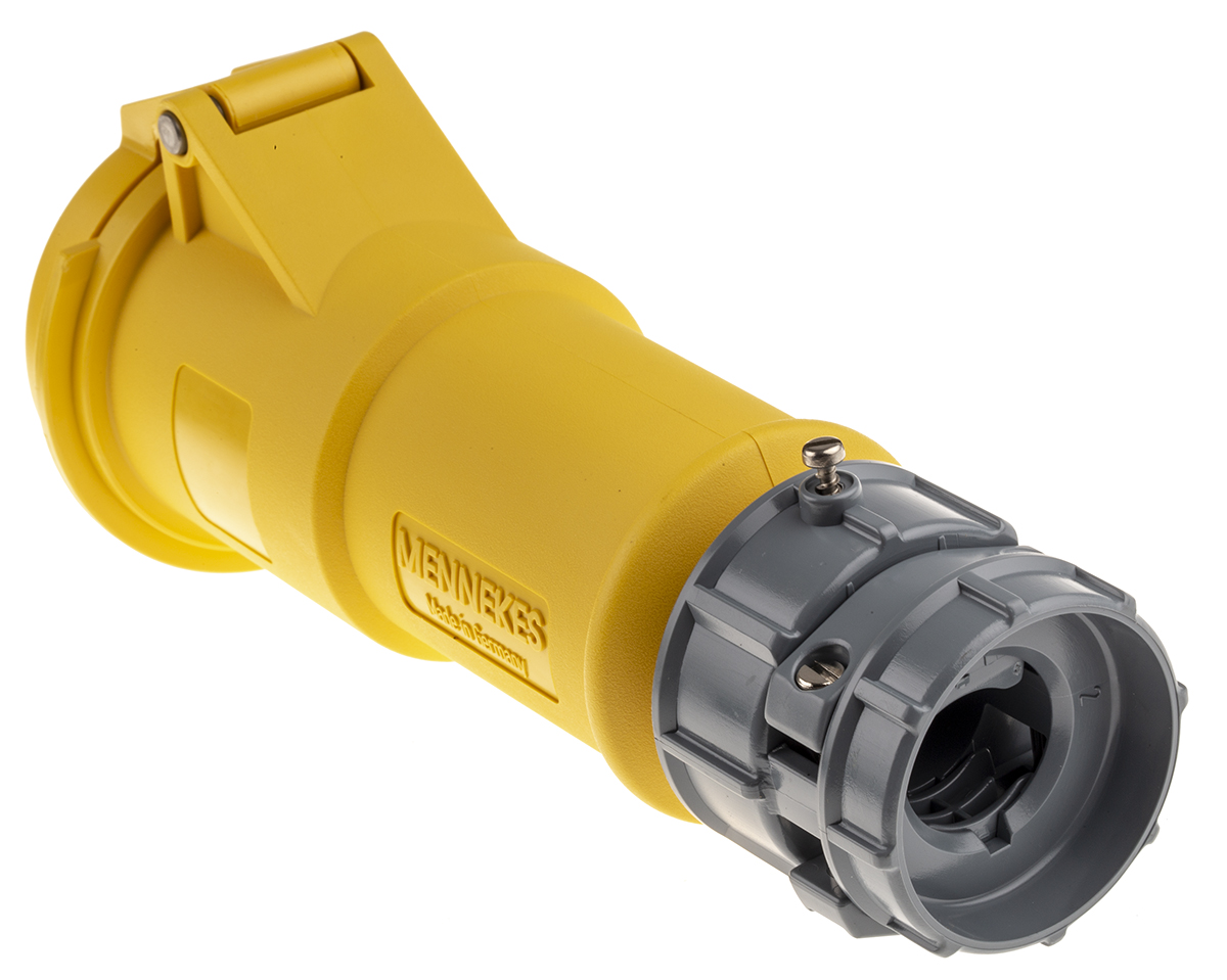 This is PowerTOP Series IP44 Yellow Cable Mount 3P Industrial Power Socket Rated At 32A 110 V manufactured by Mennekes. The manufacturer part number is 3965. The product has a current rating of 32a. The product is available in cable mount configuration. It is IP rated with ip44. In addition, female is the available "Gender" of the product. It has a decent yellow colour. Moreover, the product has a nominal 110 v voltage rating. While the pole has 3p format. It allows screw terminal termination method. It comprises a socket. Whereas, the minimum operating temperature of the product is -25°c. The product powertop, is a highly preferred choice for users. The cross section area of the cable includes 2.5 → 6mm². It has a maximum operating temperature of +55°c. It has straight body orientation. It has low voltage no .