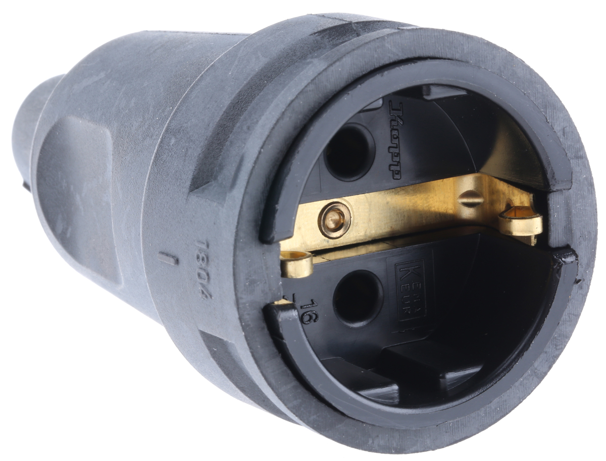 This is Black Mains Connector Socket Rated At 16A 250 V ac manufactured by Kopp. The manufacturer part number is 180416066. The product has a current rating of 16a. The product is available in cable mount configuration. Moreover, the product has a nominal 250 v voltage rating. In addition, female is the available "Gender" of the product. It has a decent black colour. It comprises a socket.