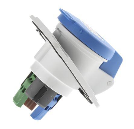 This is PratiKa Series IP44 Blue Panel Mount 2P+E Angled Industrial Power Socket Rated At 16A 200 → 250 V manufactured by Merlin Gerin. The manufacturer part number is PKY16F423. The product has a current rating of 16.0a. The product is available in panel mount configuration. It is IP rated with ip44. In addition, female is the available "Gender" of the product. It has a decent blue colour. Moreover, the product has a nominal 230.0 v voltage rating. While the pole has 2p+e format. It allows quick connect termination method. It comprises a socket. The product pratika, is a highly preferred choice for users. It has angled body orientation.