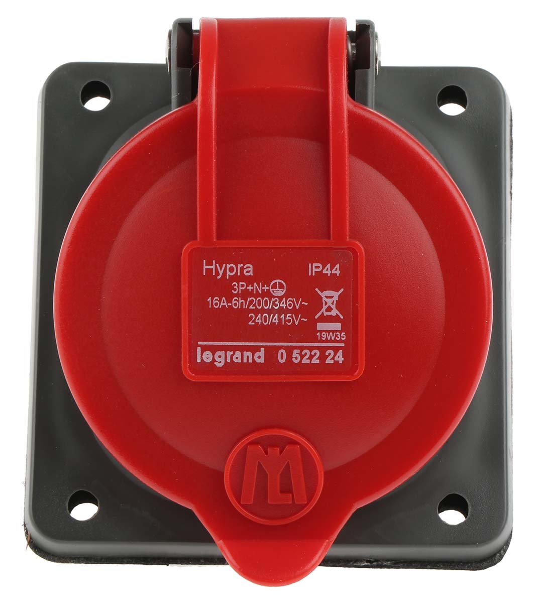 This is 3P+N+E Pole Industrial Power Socket manufactured by Legrand. The manufacturer part number is 0 522 24. The product has a current rating of 16a. It has a decent red colour. It comprises a socket. While the pole has 3p + n + e format. The product is available in panel mount configuration.