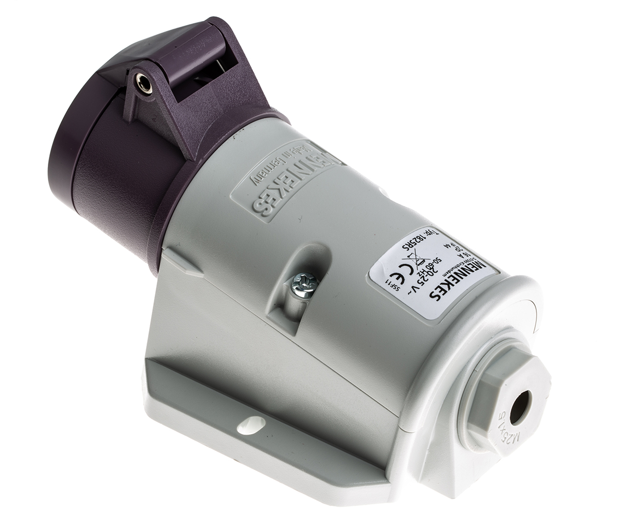 This is IP44 Purple Wall Mount 2P Right Angle Industrial Power Socket Rated At 16A 20 → 25 V manufactured by Mennekes. The manufacturer part number is 1825. The product has a current rating of 16a. The product is available in wall mount configuration. It is IP rated with ip44. In addition, female is the available "Gender" of the product. It has a decent purple colour. Moreover, the product has a nominal 20 → 25 v voltage rating. While the pole has 2p format. It comprises a socket. It has right angle body orientation. It has low voltage yes .