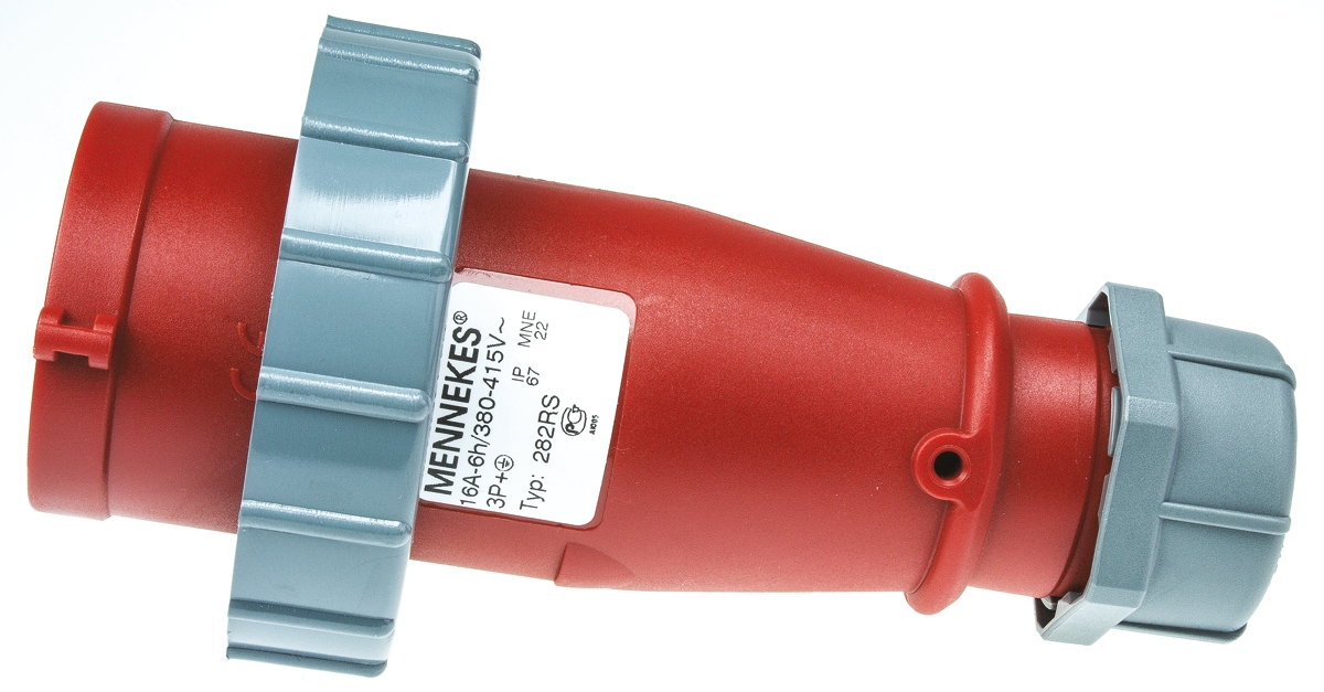This is AM-TOP Series IP67 Red Cable Mount 4P Industrial Power Plug Rated At 16A 400 V manufactured by Mennekes. The manufacturer part number is 282. The product has a current rating of 16a. The product is available in cable mount configuration. It is IP rated with ip67. In addition, male is the available "Gender" of the product. It has a decent red colour. Moreover, the product has a nominal 400 v voltage rating. While the pole has 4p format. It allows screw terminal termination method. It comprises a plug. Whereas, the minimum operating temperature of the product is -25°c. The product am-top, is a highly preferred choice for users. The cross section area of the cable includes 1 → 2.5mm². It has a maximum operating temperature of +55°c. It has straight body orientation. It has low voltage no .
