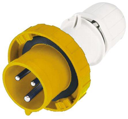 This is IP67 Yellow Cable Mount 2P+E Industrial Power Plug Rated At 63A 100 → 130 V manufactured by RS Pro. The manufacturer part number is 724-9139. The product has a current rating of 63.0a. The product is available in cable mount configuration. It is IP rated with ip67. In addition, male is the available "Gender" of the product. It has a decent yellow colour. Moreover, the product has a nominal 110.0 v voltage rating. While the pole has 2p+e format. It comprises a plug. It allows screw termination method. The cross section area of the cable includes 16.0mm². It has straight body orientation.