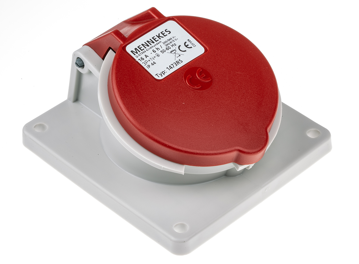 This is IP44 Red Panel Mount 5P 20 ° Industrial Power Socket Rated At 16A 400 V manufactured by Mennekes. The manufacturer part number is 1473. The product has a current rating of 16a. The product is available in panel mount configuration. It is IP rated with ip44. In addition, female is the available "Gender" of the product. It has a decent red colour. Moreover, the product has a nominal 400 v voltage rating. While the pole has 3p + n + e format. It comprises a socket. Whereas, the minimum operating temperature of the product is -25. It allows screw terminal termination method. The cross section area of the cable includes 1.5 → 4mm². It has a maximum operating temperature of +55°c. It has angled body orientation. It has low voltage no .