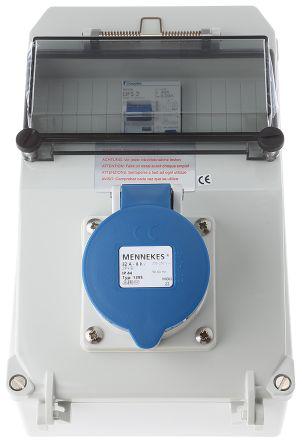This is IP44 Blue DIN Rail Mount 2P+E RCD Industrial Power Connector Socket Rated At 32A 230 V manufactured by Mennekes. The manufacturer part number is 24196. The product has a current rating of 32a. The product is available in din rail mount configuration. It is IP rated with ip44. In addition, female is the available "Gender" of the product. It has a decent blue colour. Moreover, the product has a nominal 230 v voltage rating. While the pole has 2p+e format. It comprises a socket. It carries [Serial Number] serial number.